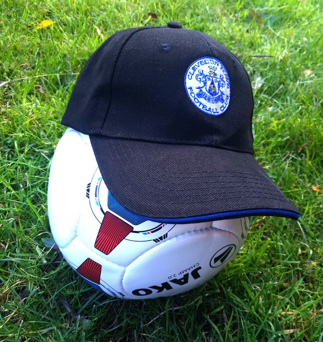 Get your head in order with our black peaked baseball cap with adjustable band, or our one-size blue cotton bucket hat, both with club crest on the front and ideal for match days, golf course or the beach among many uses!